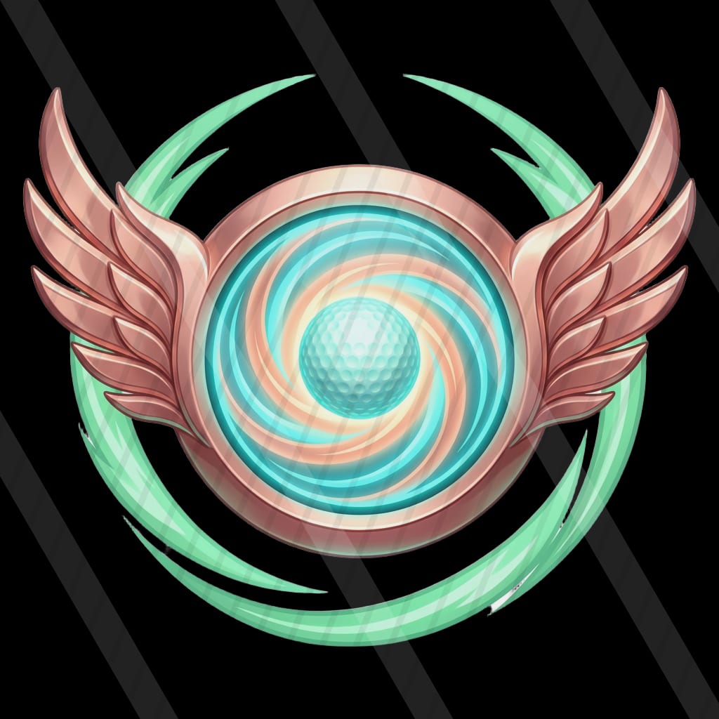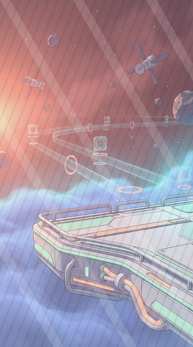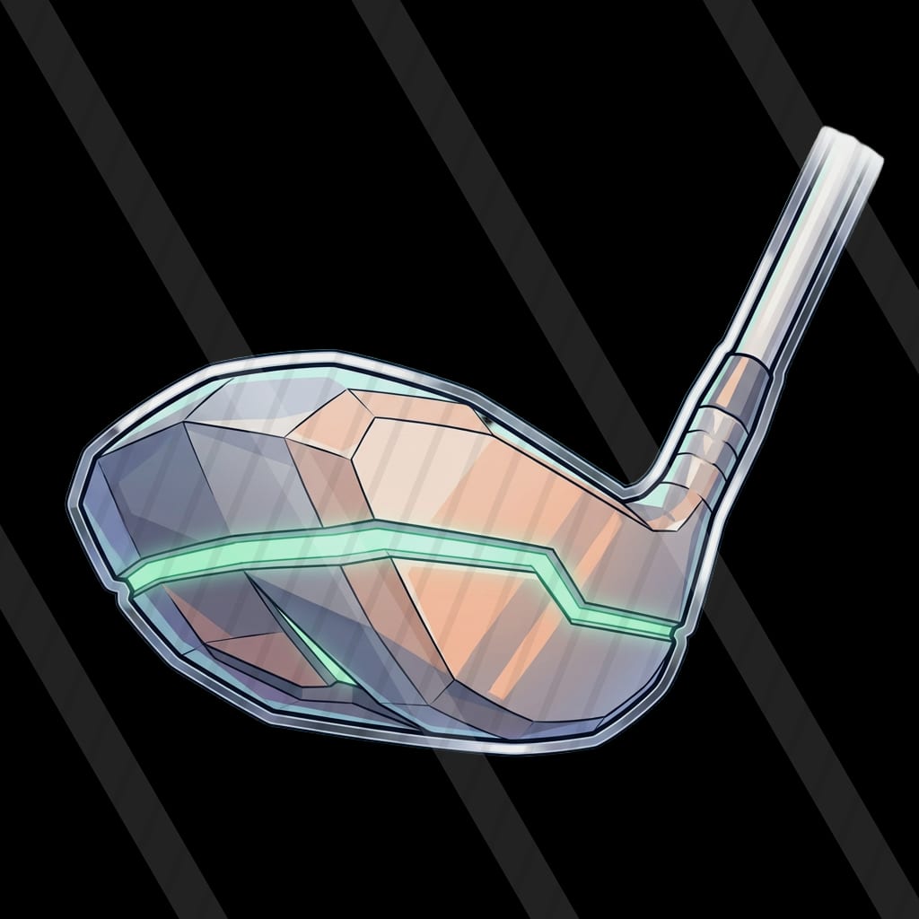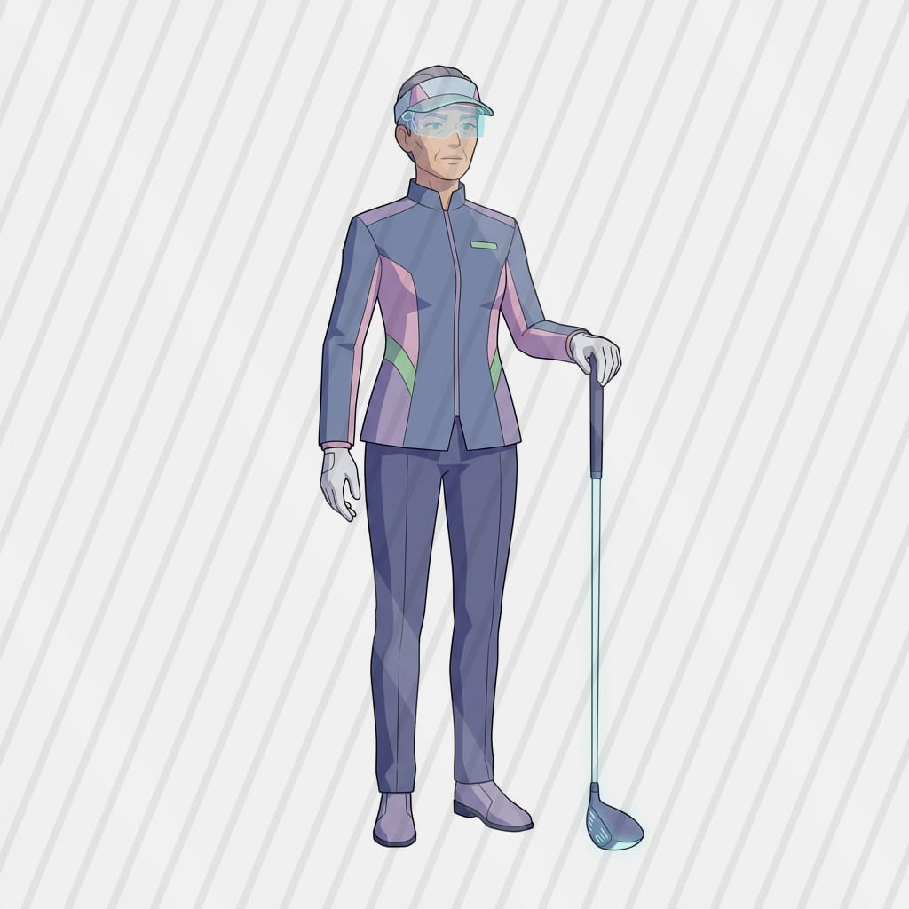 A pastel cel-shaded sci-fi driving-range slot where energy golf shots drift through a cozy nebula toward floating hologram targets.