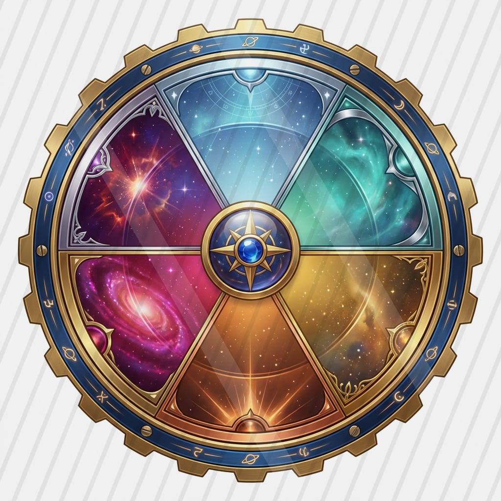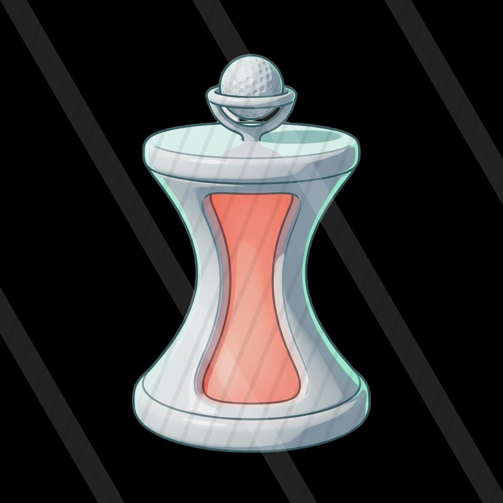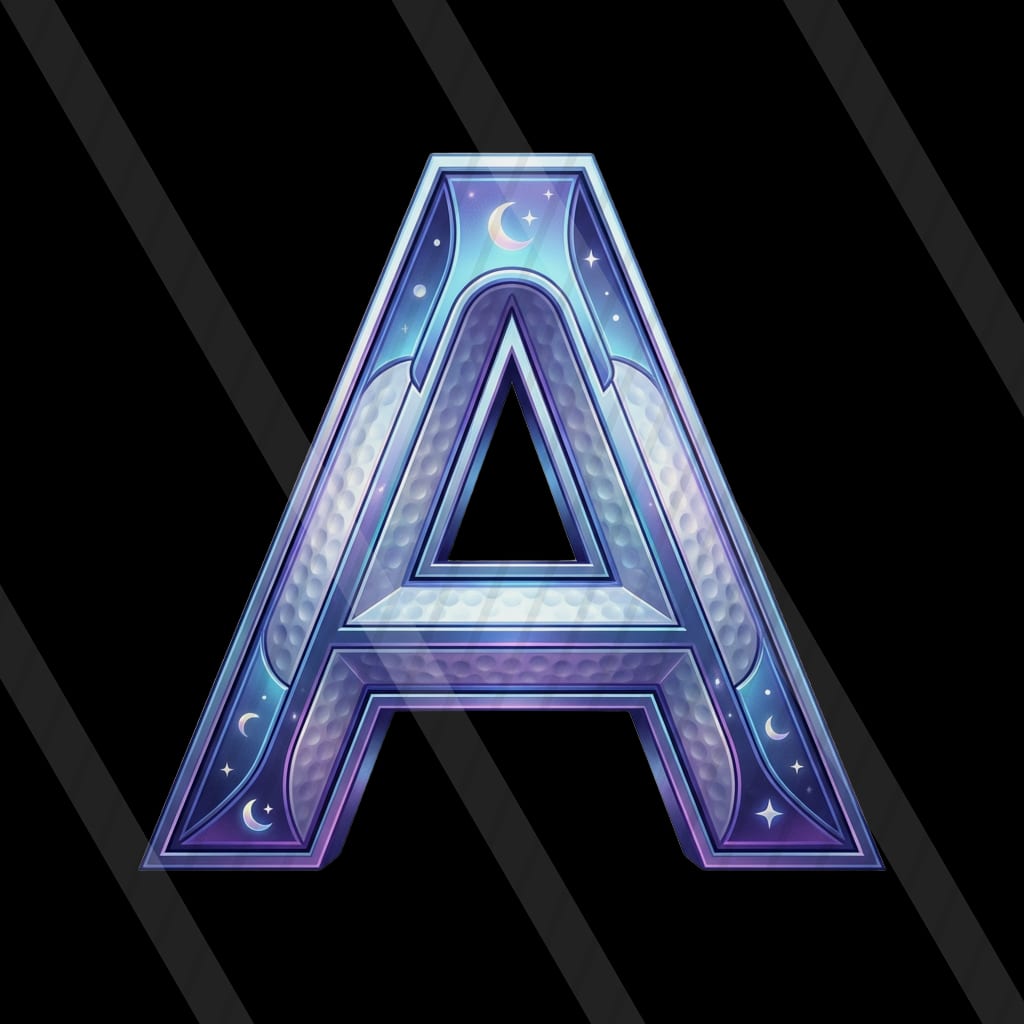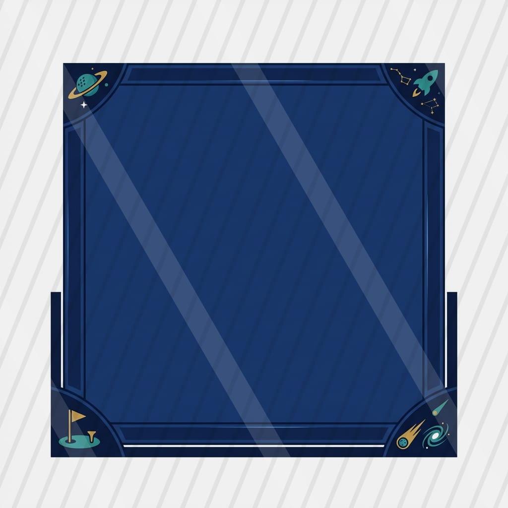 A pastel cel-shaded sci-fi driving-range slot where energy golf shots drift through a cozy nebula toward floating hologram targets.